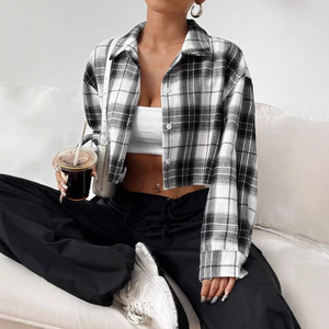 クロスボーダー 2025 ヨーロッパとアメリカの新しい女性のカジュアルラペルチェック柄シャツアマゾンシングルブレストカーディガンショートコート女性用