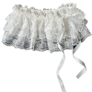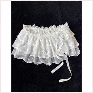 重工芭蕾风时髦蕾丝系带设计感小屁帘女蝴蝶结叠穿裙帘韩国春夏季