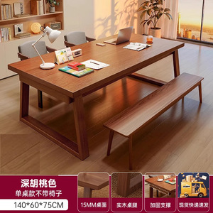 实木腿单桌【15MM桌厚】胡桃色140*60cm (包送货上门)