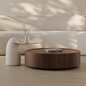 北欧イタリア無垢材コーヒーテーブル組み合わせリビングルームホームラウンドデザイナーライトモダンな小さなアパートメントウォールナットコーヒーテーブル
