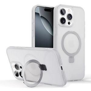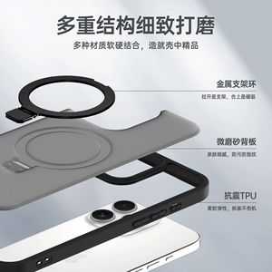 Apple 17ProMax用スマホケース、メタル製インビジブルスタンド、マグネット式iPhone16用マット肌触り保護ケース