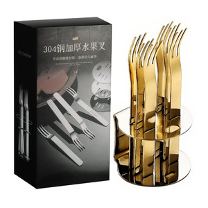 304水果叉 高颜值甜品叉三齿小叉子点心水果签子轻奢不锈钢蛋糕叉