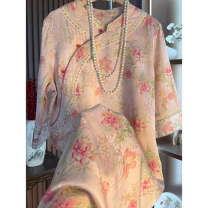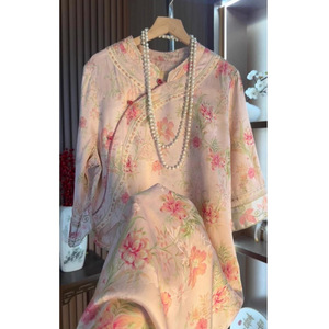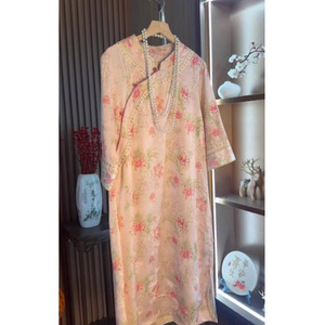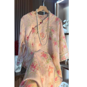 新中式女装国风粉色碎花改良旗袍高级感高端连衣裙女2025夏季新款