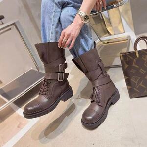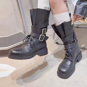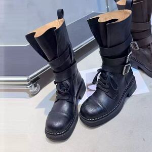 欧洲站真皮百搭马丁靴2025秋新款英伦风马丁靴中筒粗跟皮带扣女
