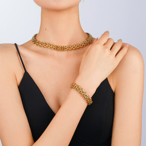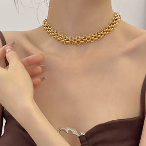 ヨーロッパとアメリカのクロスボーダーチタン鋼ライト高級ネックレス、ミッドセンチュリースタイル、多用途の太いチェーン、ハイエンドの防水性と色褪せない女性用ジュエリー