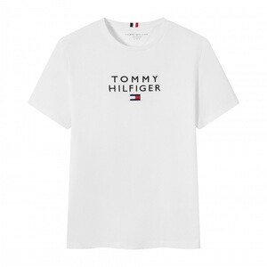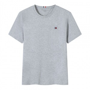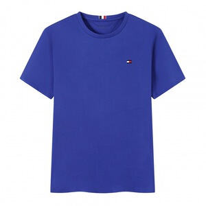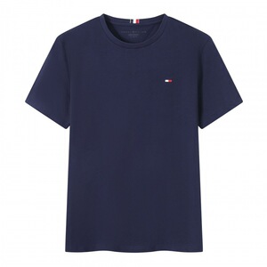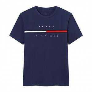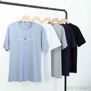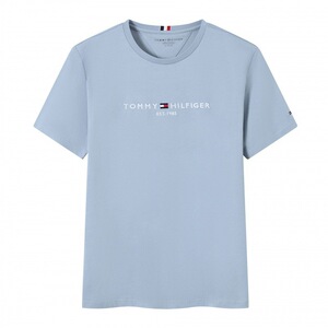 Tommy トミー サマー メンズ ラウンドネック レター Tシャツ 半袖 スリム 刺繍 トップス カジュアル 万能 スポーツ コットン