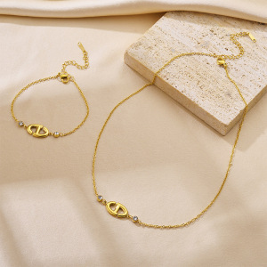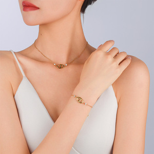 ヨーロッパとアメリカで売れ筋の新しいニッチデザイン豚鼻中空ネックレス絶妙でファッショナブルな18Kゴールドメッキハンドジュエリーセット