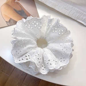韩国奶油色镂空蕾丝布艺大肠发圈高级感双层低马尾头绳头花发饰