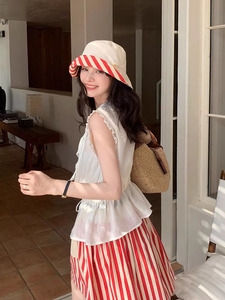 “科孚岛盛夏”复古航海系轻薄多色海军兔耳领系带小衫