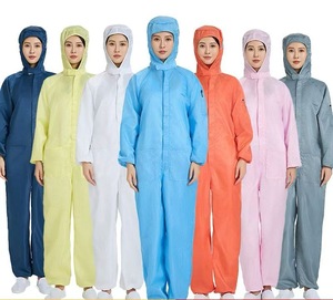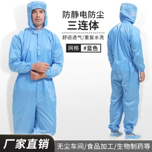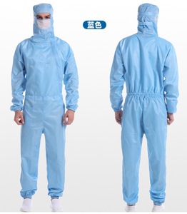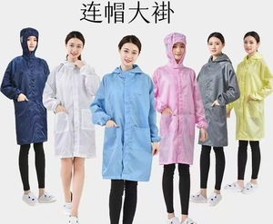 通気性のある帯電防止コート、防塵斜め前立て、ワンピースフード付きエプロン、作業用帽子、ハイチューブシューズ、帯電防止シューズカバー