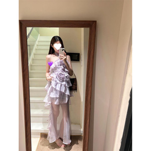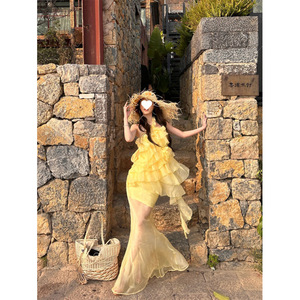 甘い立体ローズフリルホルターネックドレス夏の新しいスリムフィットガーゼスカートスーツ女性用
