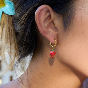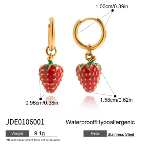 静かで美しいデザイン、甘くてロマンチックな18Kゴールドステンレススチールレッドオイルドリップステンレススチールストロベリーペンダントイヤリング