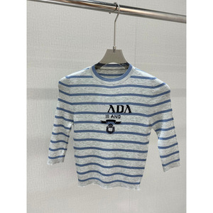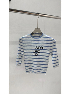 南油高端精品女装半中袖针织条纹短袖上衣字母刺绣修身百搭优雅风