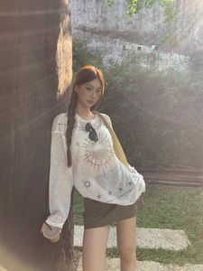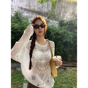 [日焼け止め生地]韓国風プリント長袖Tシャツレディース夏ゆったり痩身ホットガール日焼け止めトップトレンディ