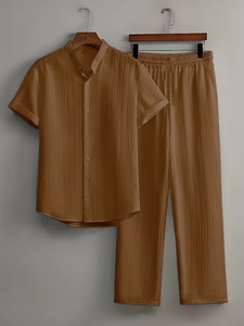 ヨーロッパとアメリカのクロスボーダー AliExpress 外国貿易メンズカジュアルマルチカラービーチウェア竹しわ半袖スーツ 2 点セット