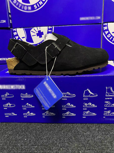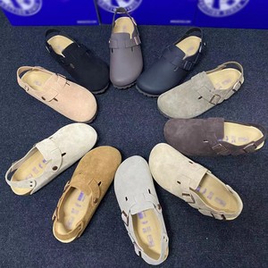 现货2025新款软木舒适百搭厚底勃肯鞋休闲后绊带真皮包头拖博肯鞋