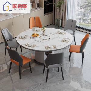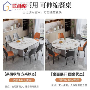 简约岩板餐桌伸缩一体方圆桌家用暖菜板带转盘电磁炉智能高端圆桌