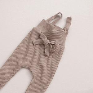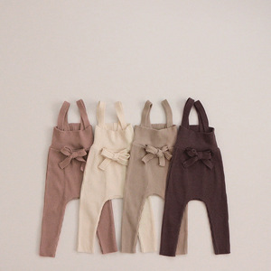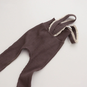 韩版吊带裤女宝宝坑条背带裤婴儿春秋长裤女童弹力花边吊带裤发带