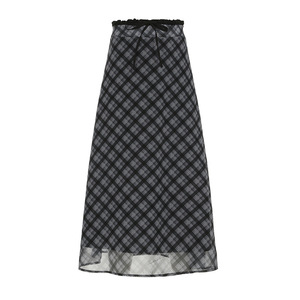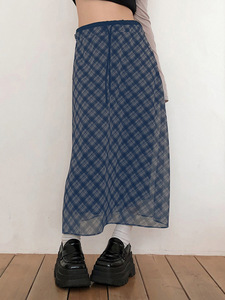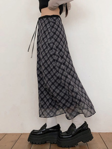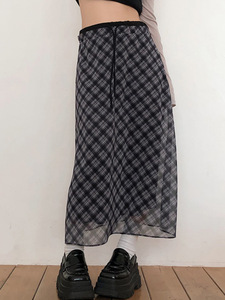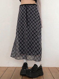 カレッジスタイルのレトロなチェック柄の年齢を軽減するハイウエストのミドル丈スカート、女性用デザインウエスト痩身シフォンスカート