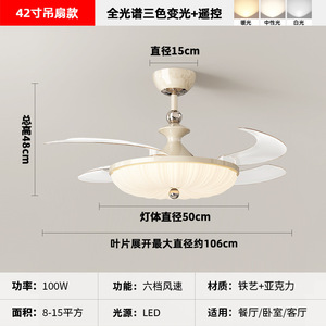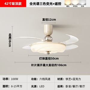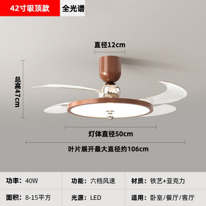 中古风扇灯隐形餐厅吊扇灯新款复古胡桃木色静音超薄卧室电扇灯