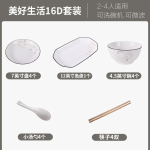 グッドライフ ボウル 4 個、皿 4 個、スプーン 4 個、箸 4 個、魚皿 1 個
