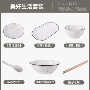 グッドライフ ボウル 8 個、皿 8 個、スプーン 8 個、箸 8 個、スープボウル 1 個、魚皿 1 個