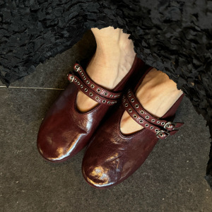 牛皮版~英伦风圆头浅口玛丽珍鞋新款一字带低跟平底鞋复古单鞋女