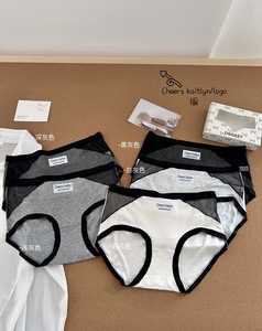 字母内裤女柔棉舒适透气桑蚕丝底裆中腰包臀镂空网纱三角裤