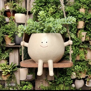 跨境新款创意可爱秋千悬挂客厅摆件笑脸户外花园庭院摆件厂家批发