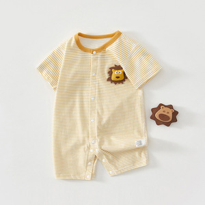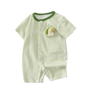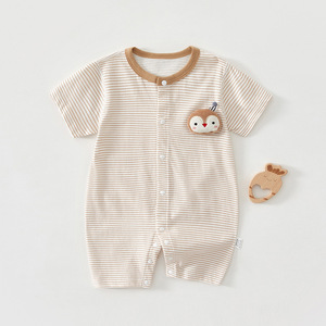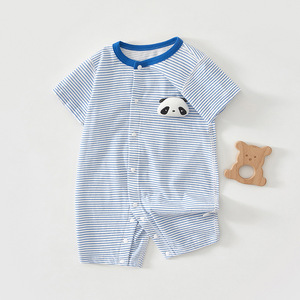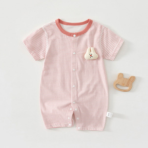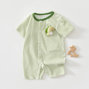婴儿连体衣夏季薄款条纹短袖空调服 新生儿衣服a类纯棉无骨家居服