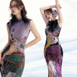 新中式晕染复古别致设计独特精致绝美印花连衣裙女夏季新款长裙