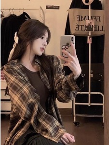 秋季新款港风格子衬衫女2025新款oversize宽松慵懒风外穿衬衣休闲