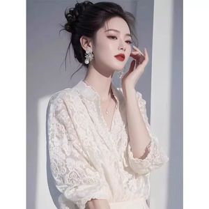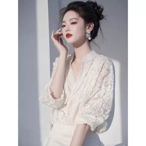 今年人気の超見栄えの良い白いレースシャツ、夏の新しいスタイル、高級感、フランスの気質、美しいユニークなトップス