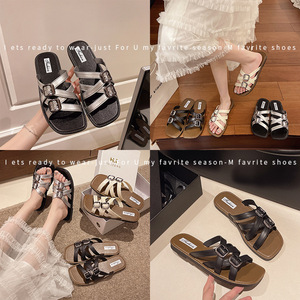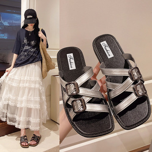 凉拖鞋女夏季外穿2025新款时尚百搭配裙子海边沙滩罗马风一字拖鞋