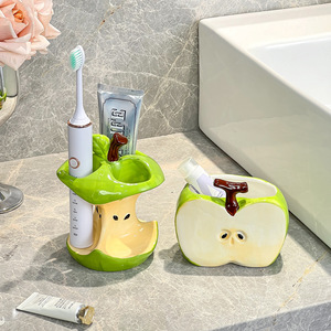 ハーフアップルセラミック 2025 新しい電動歯ブラシ収納ラック洗面台歯ブラシ歯磨き粉かわいい