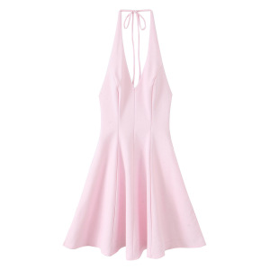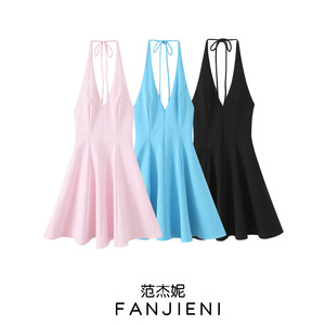 ZR 外国貿易卸売ヨーロッパとアメリカンスタイルの女性のファッション波状ワイド裾ホルターネックショートドレス 4661379