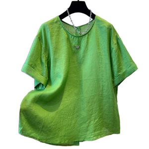 オールドマネースタイルラウンドネックスリム半袖Tシャツレディーストップス年齢軽減ルーズ無地ファッション万能シャツ2025年夏
