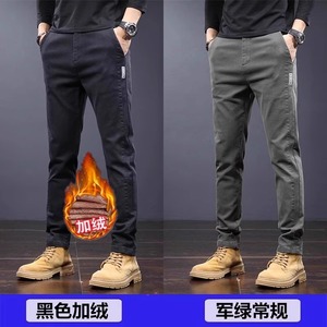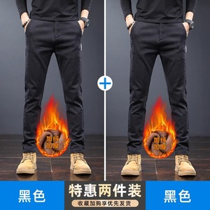 ウッドペッカーカジュアルパンツメンズ 2025 新しい秋と冬プラスベルベットスリムストレートジーンズメンズパンツメンズ秋