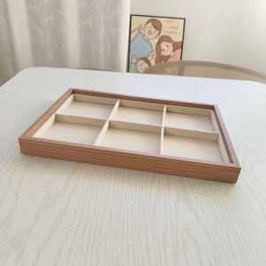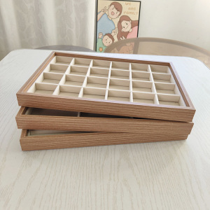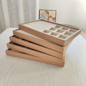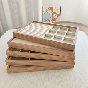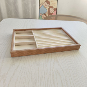 加大号竹木纹米色绒布饰品首饰托盘戒指耳钉项链收纳盒手镯卖货盘