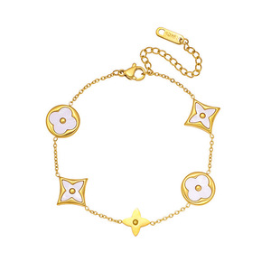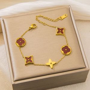 ネットセレブと同じスタイルのチタン鋼四つ葉のクローバーブレスレット、女性用、軽くて豪華で多用途、18Kリアルゴールド五花ブレスレット、ドロップシッピング