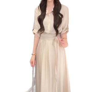禅意茶歇风2025夏新款简约衬衫+半身裙两件套女小个子连衣裙套装