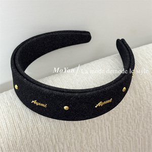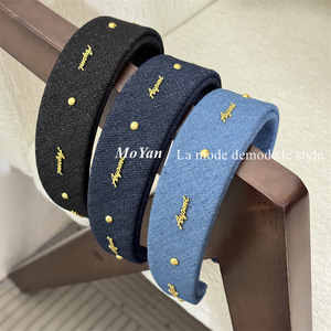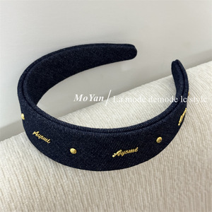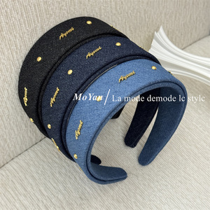 韓国版の新しいスタイルの手作りオーバーレイデニムヘッドバンド、ハイエンド、高品質、気質、多用途の外出用ヘアピン