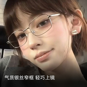 日系金丝方框眼镜女近视可配度数小脸复古银边防蓝光窄框眼镜架