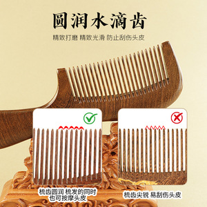 天然黑金檀木梳子防静电不伤发木梳男士女士直发顺发伴手礼美发梳