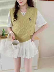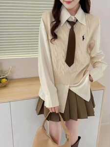 2025新款春秋女装上衣学院风针织毛衣叠穿女背心刺绣马甲甜美坎肩