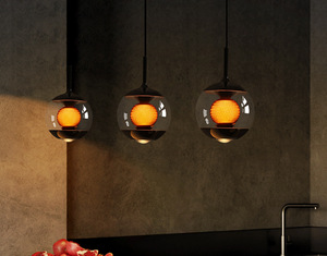 北欧玻璃圆球单头吊灯创意复古工业风餐厅吧台透明灯罩床头小吊灯