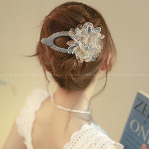 後頭部の髪の量の多い女性向けの春のガーゼフラワーダックビルヘアクリップ、ハイエンドトップクリップ、シャーククリップ