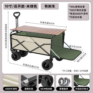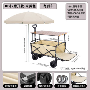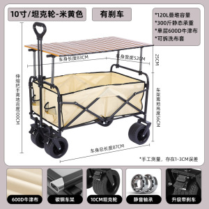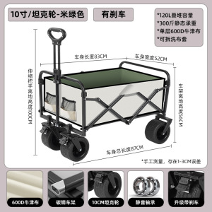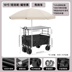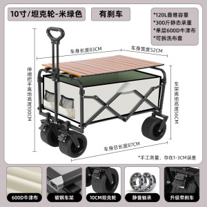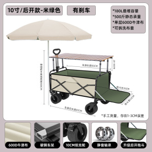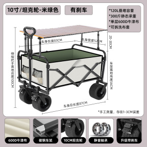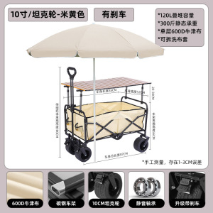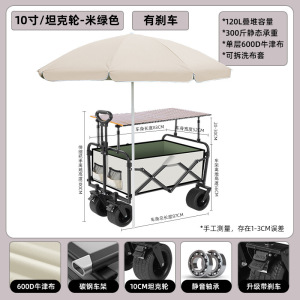 大型タンクホイール カーキ/ダブルブレーキ+リフティングロッド+テーブル+パラソル