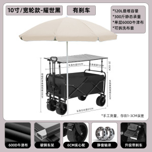 大型ワイドホイール ブラック/ダブルブレーキ+リフティングロッド+テーブル+パラソル