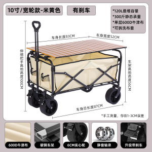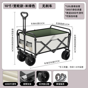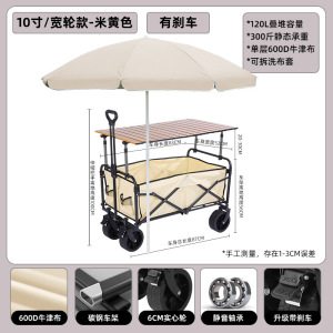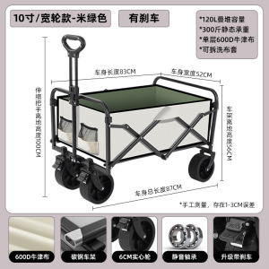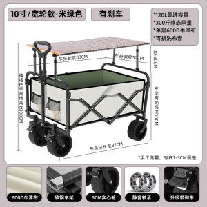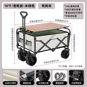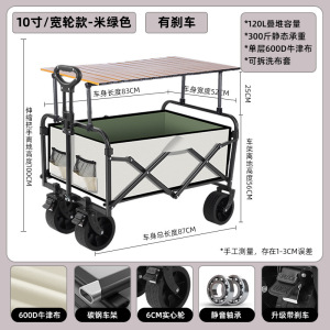 大型ワイドホイール カーキ/ダブルブレーキ+リフティングロッド+テーブル+パラソル